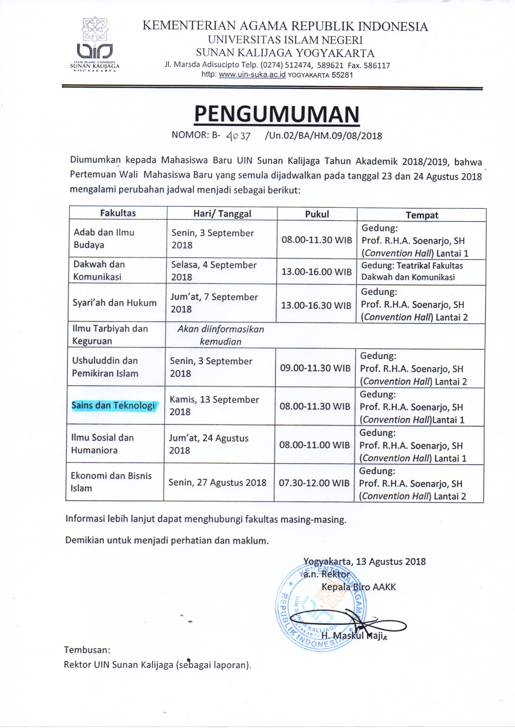 Ralat Pengumuman Pertemuan Wali Bagi Mahasiswa Baru ...