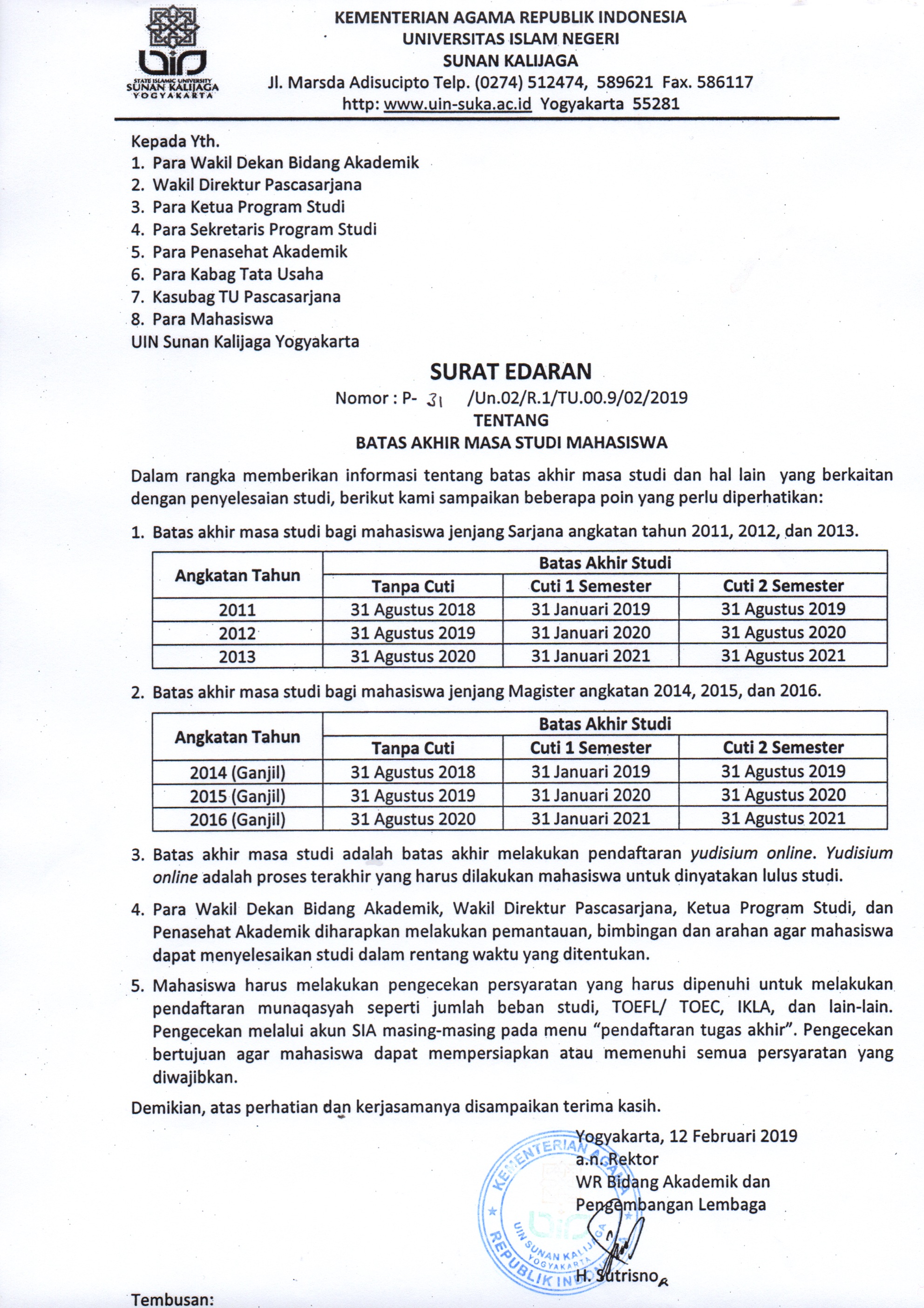 Surat Edaran Batas Akhir Masa Studi Mahasiswa ...