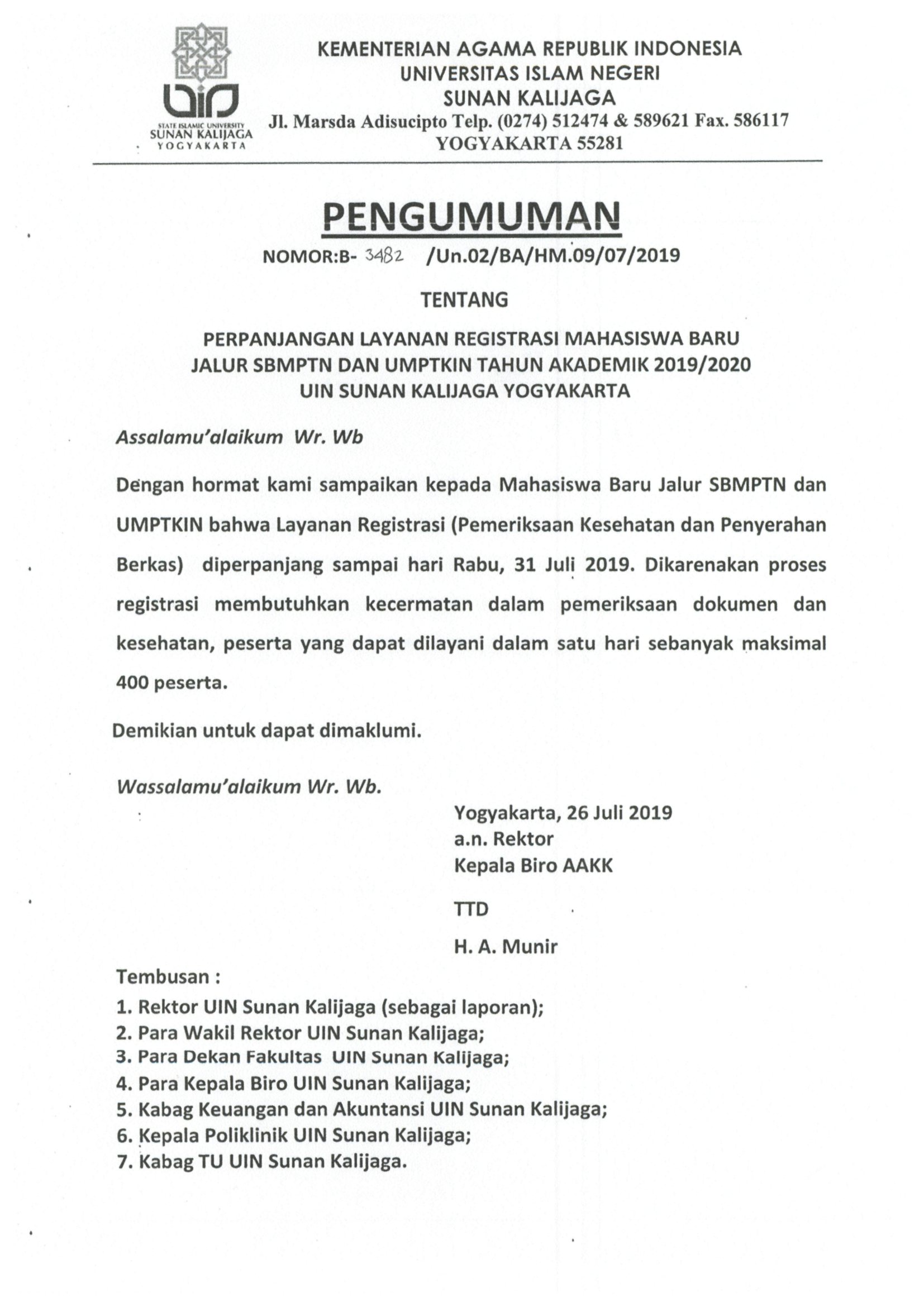 Perubahan Pengumuman Nomor B-3082.1/Un.02/TU.00.3/07/2025 tentang Jadwal dan Prosedur Herregistrasi Mahasiswa S1, S2, dan S3 pada Semester Ganjil Tahun Akademik 2025/2026 UIN Sunan Kalijaga Yogyakarta