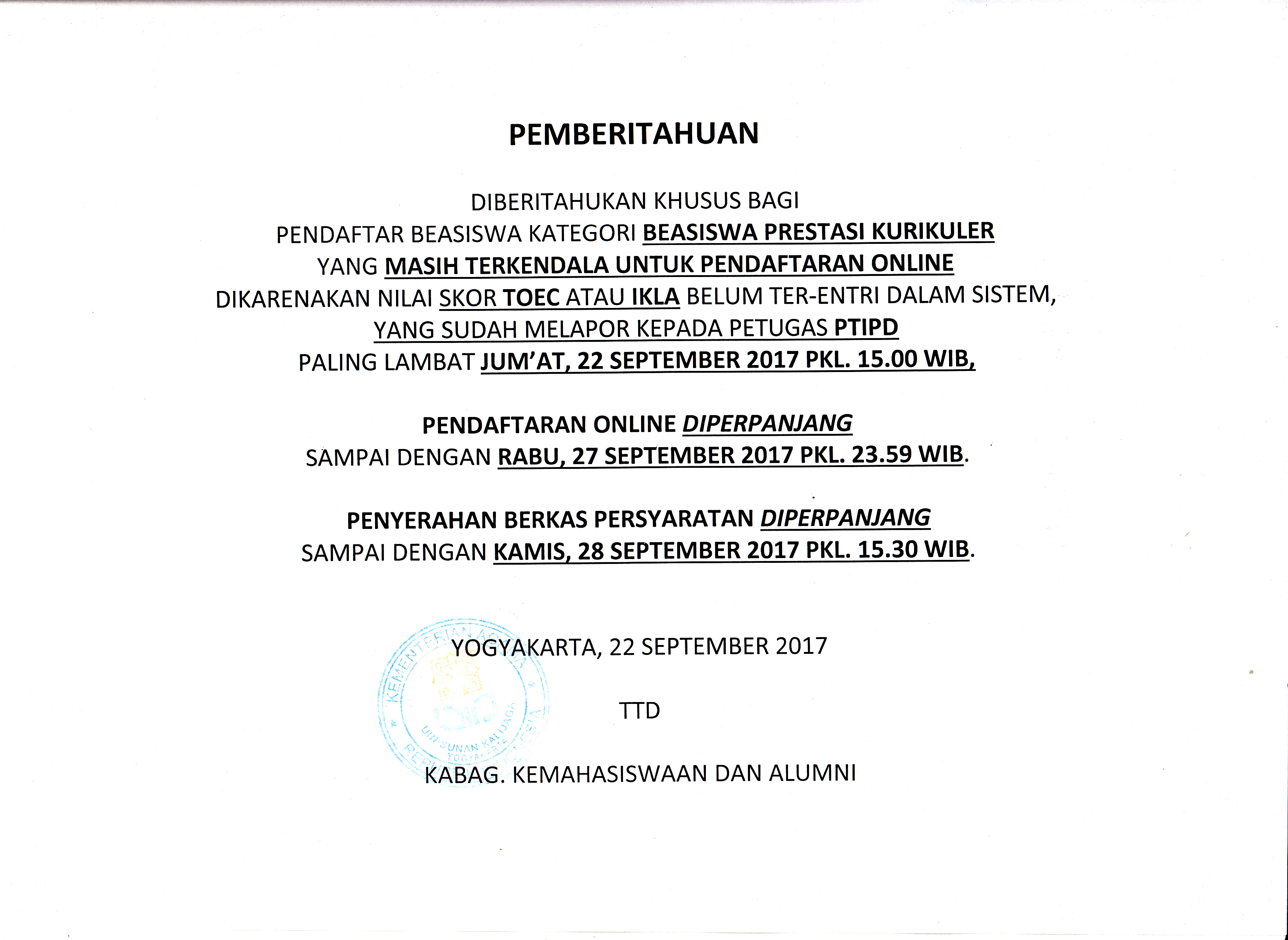 Perpanjangan Pendaftaran Beasiswa Peningkatan Prestasi dan Akademik 2017 ...